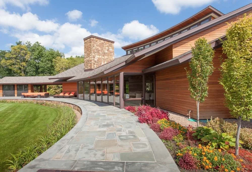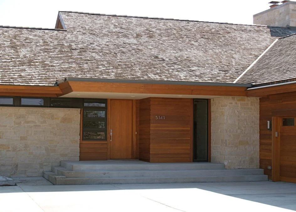 This home’s Usonian style represents more organic materials that are consistent throughout the exterior presentation.